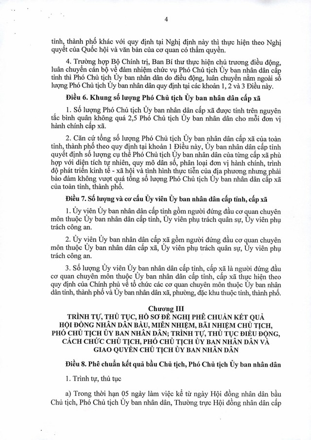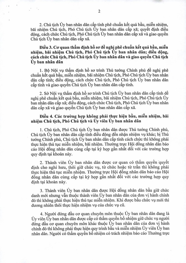 Điều 4, quy định các trường hợp không phải thực hiện bầu, miễn nhiệm, bãi nhiệm Chủ tịch, Phó Chủ tịch và Ủy viên UBND.